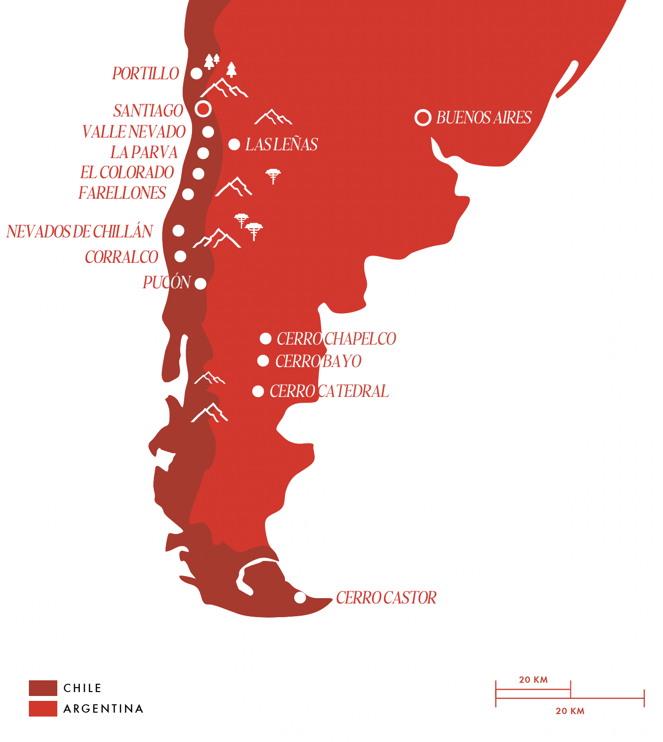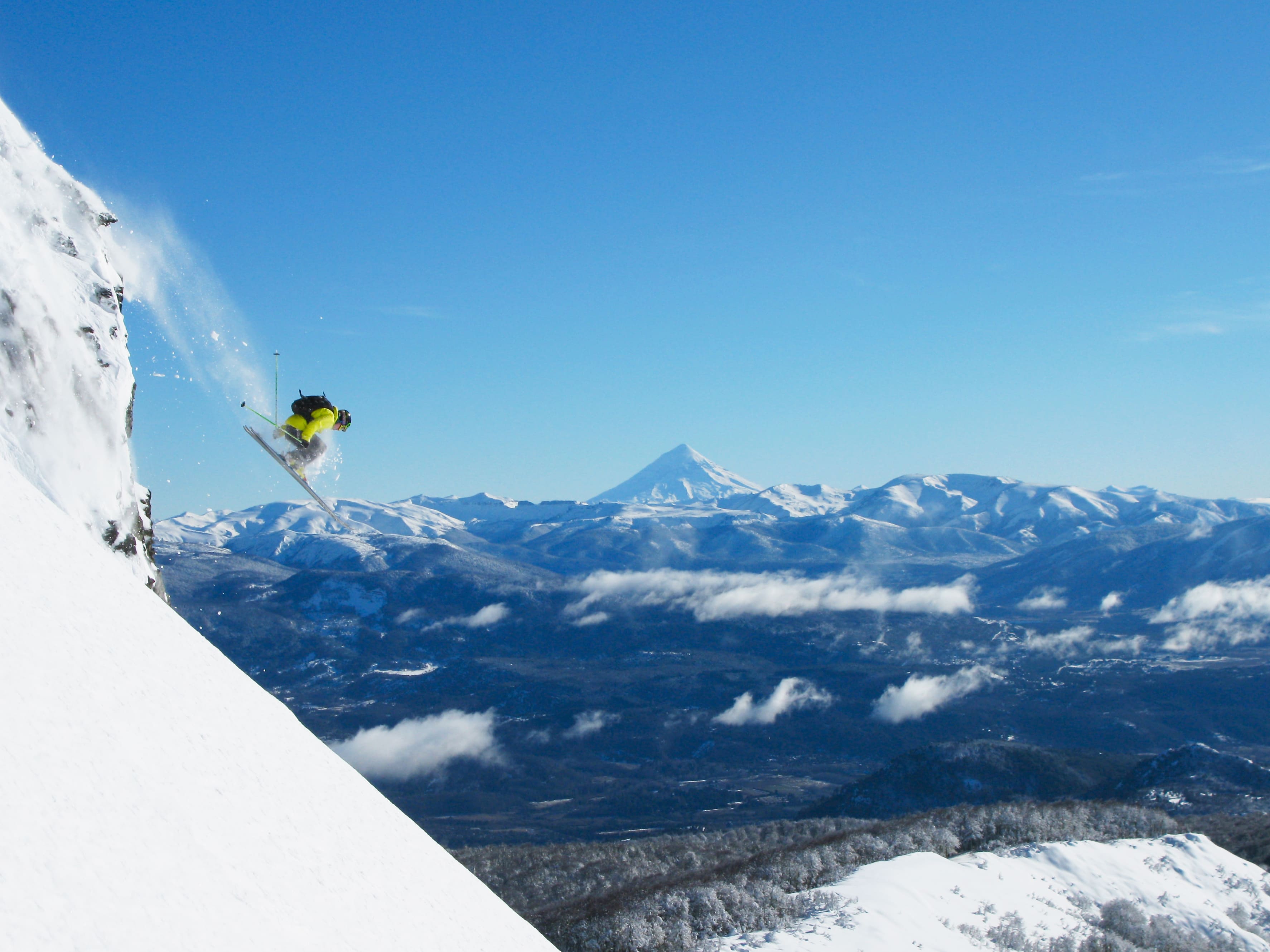 Com altitude de 2.847 metros e 20 km de pistas, Pucón oferece terrenos variados, neve de boa qualidade e, claro, aquela sensação indescritível de descer um vulcão ativo com os lagos e florestas da Araucanía no horizonte.