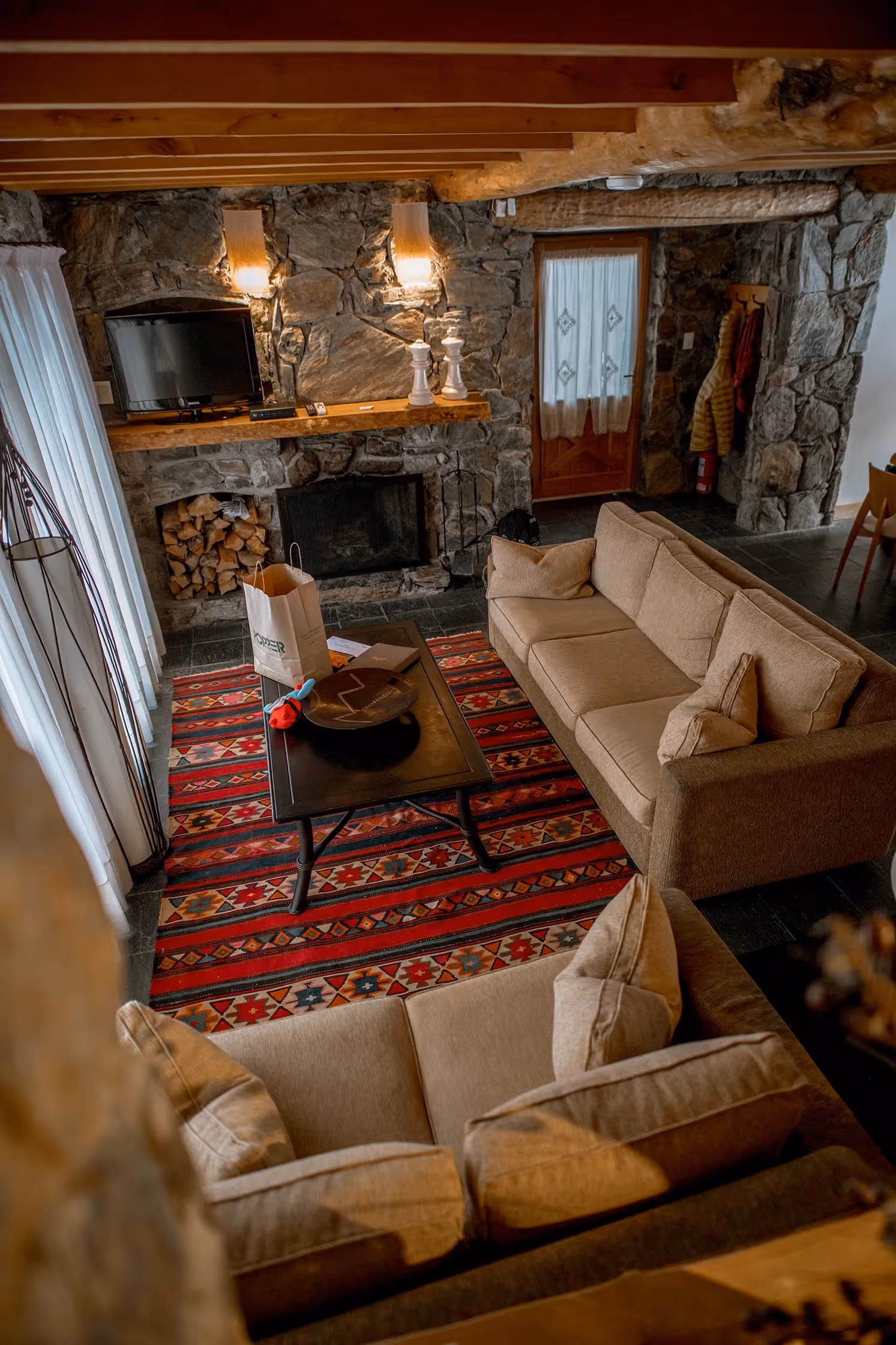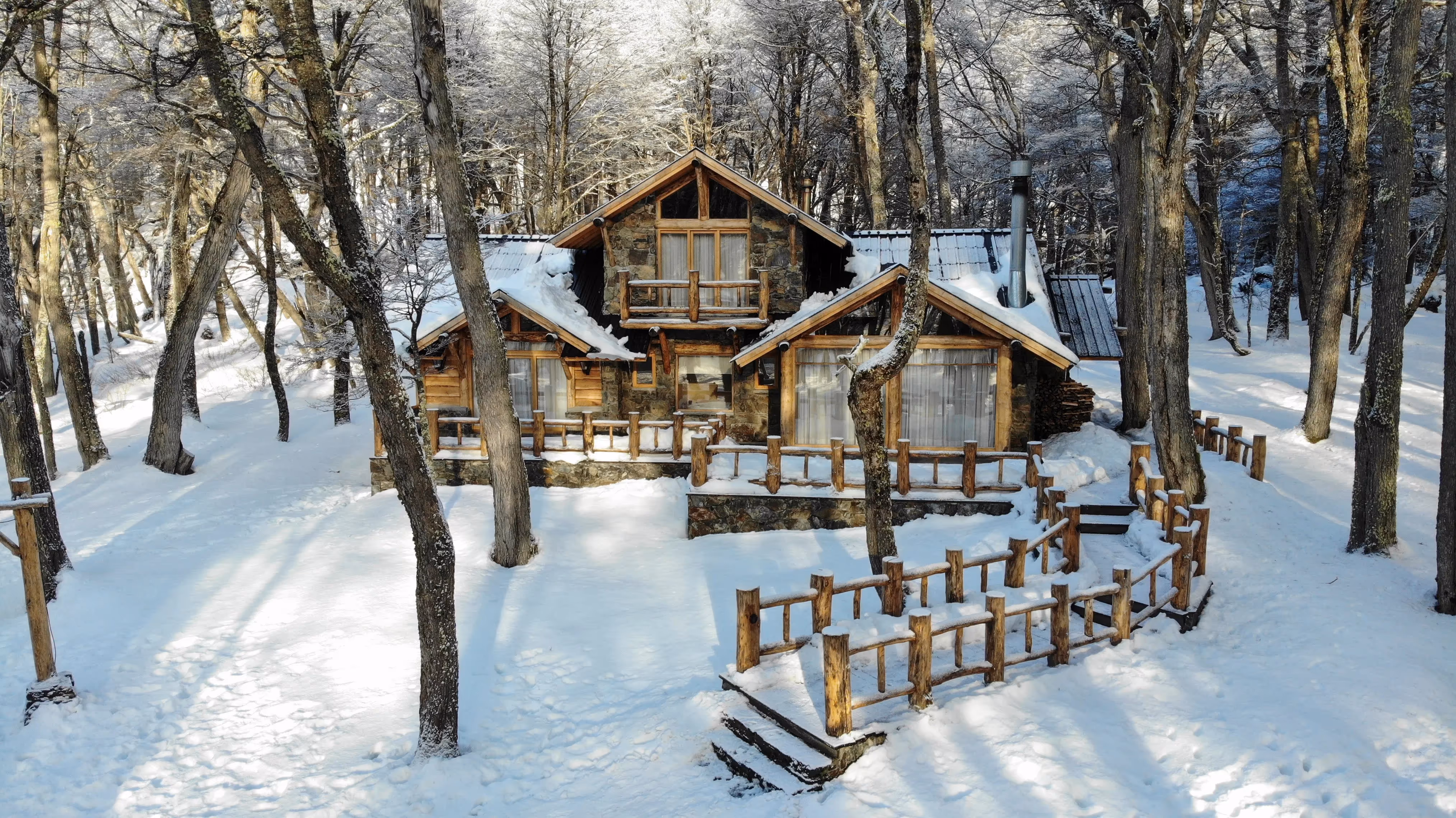 As acomodações são espaçosas, com decoração aconchegante em estilo patagônico, lareira, aquecimento central e vistas deslumbrantes das montanhas cobertas de neve. É ideal para famílias, casais e grupos de amigos que buscam uma experiência imersiva na neve, longe do agito urbano.