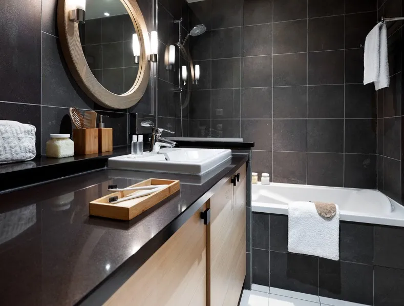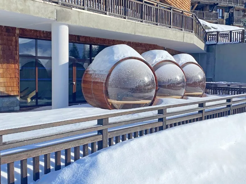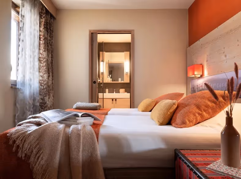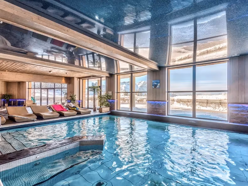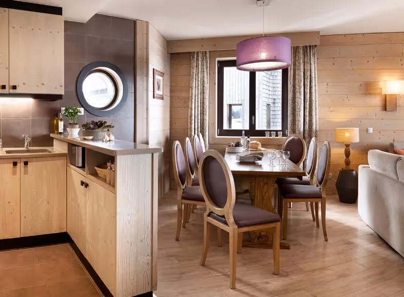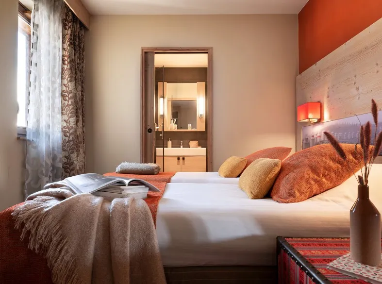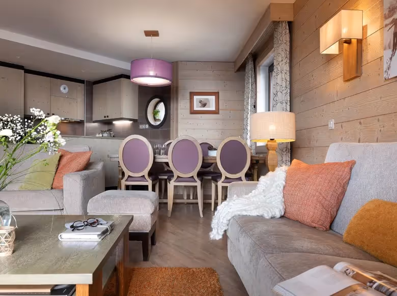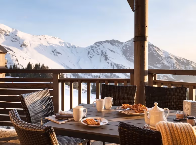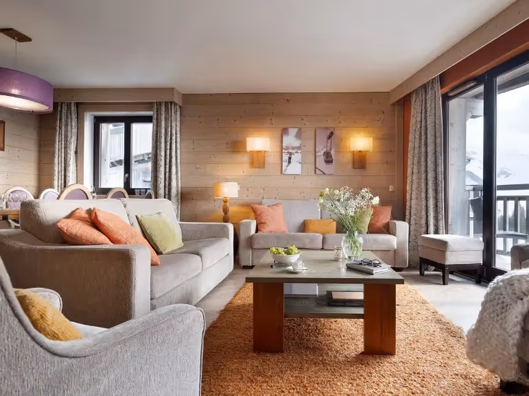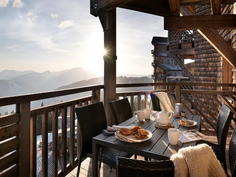 Os apartamentos dispõem de terraço privativo e, em algumas unidades, oferecem vista panorâmica e desobstruída para as montanhas. O ambiente foi cuidadosamente projetado para proporcionar conforto e bem-estar, ideal para famílias e grupos que desejam uma estadia relaxante e sofisticada nos Alpes franceses.