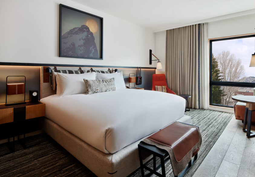 O hotel é pet friendly, permitindo até dois cães por acomodação e oferecendo camas, tigelas e mimos especiais para os pets. O conforto é complementado por uma ampla gama de serviços, incluindo piscina externa, hidromassagem, academia moderna equipada com bicicletas Peloton e espelhos interativos, serviço de concierge, valet parking e traslado gratuito para o Jackson Hole Mountain Resort durante a temporada de esqui.