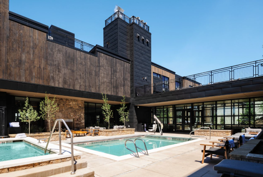 A arquitetura e o design do The Cloudveil refletem essa conexão com a natureza, combinando madeira, pedra e couro a elementos contemporâneos. O resultado é um ambiente elegante, mas com o calor característico das montanhas. Os quartos e suítes são amplos e convidativos, muitos com lareira, vistas panorâmicas para as montanhas ou para a praça central, e decoração inspirada nas paisagens locais.